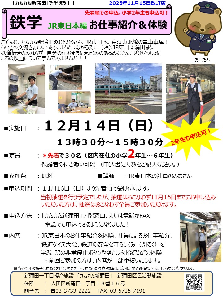 JR東日本のお仕事紹介&体験、社員によるお仕事紹介、鉄道クイズ大会、鉄道の安全を